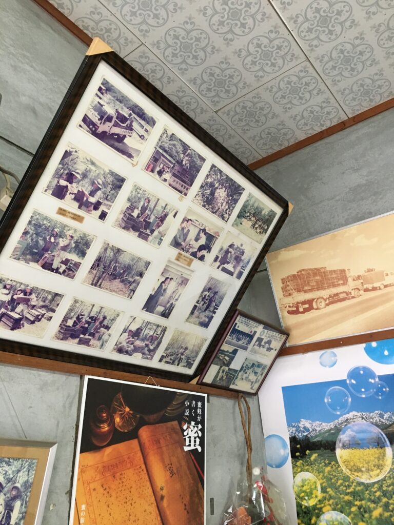 店内には養蜂の時の写真や