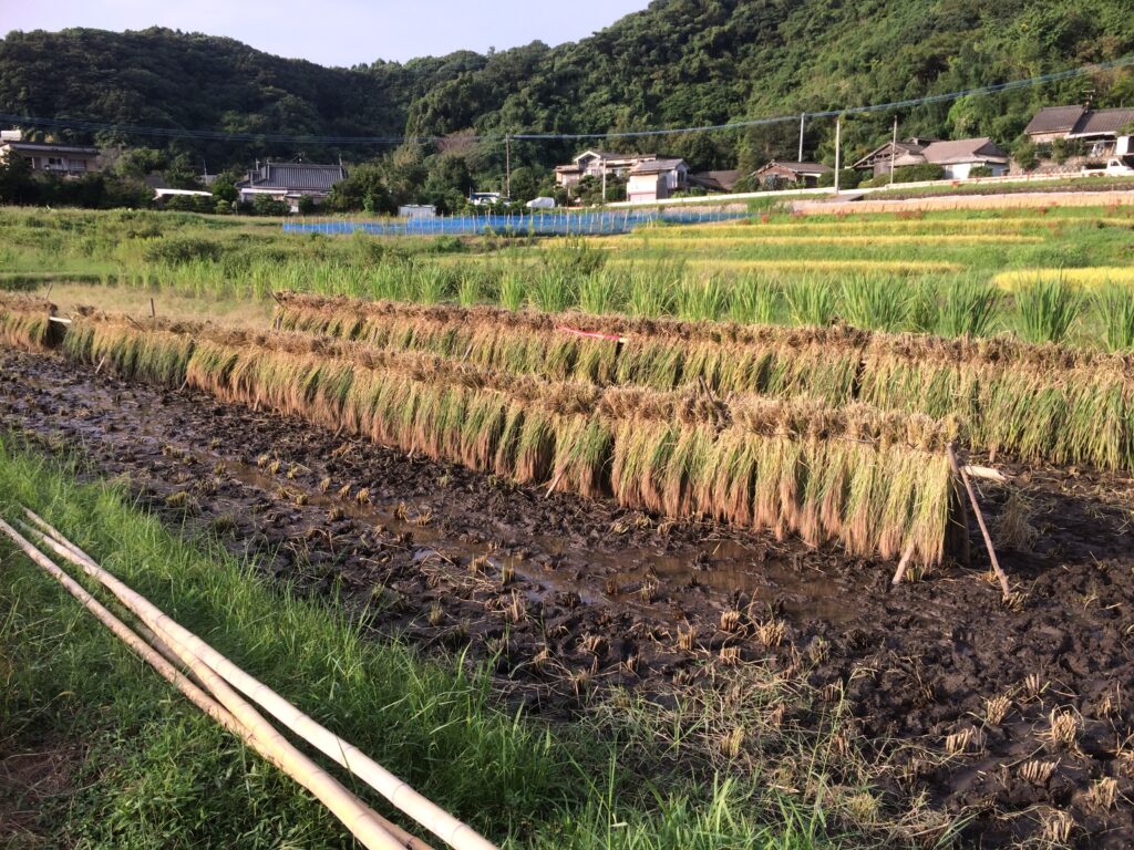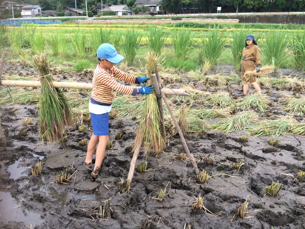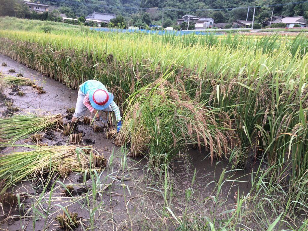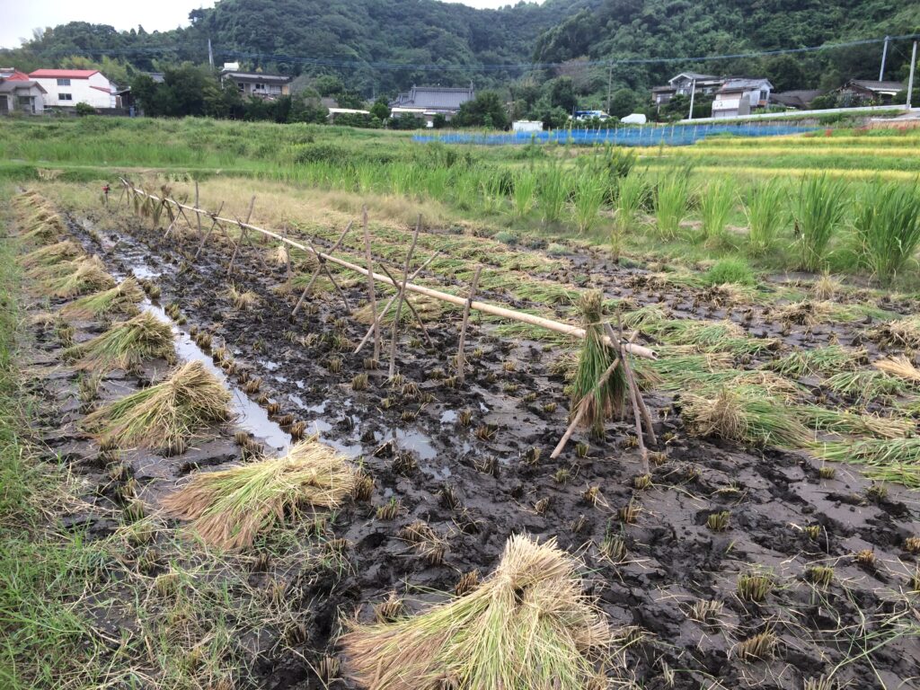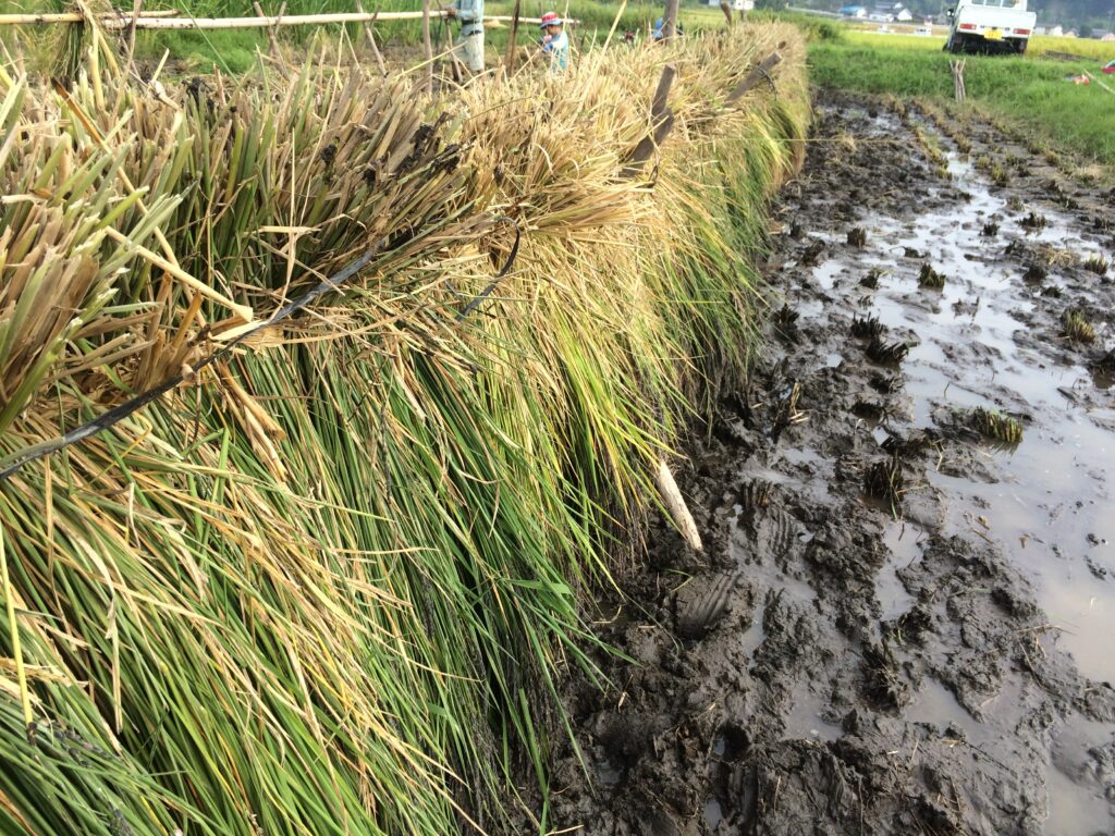 稲刈りから干す作業まで、