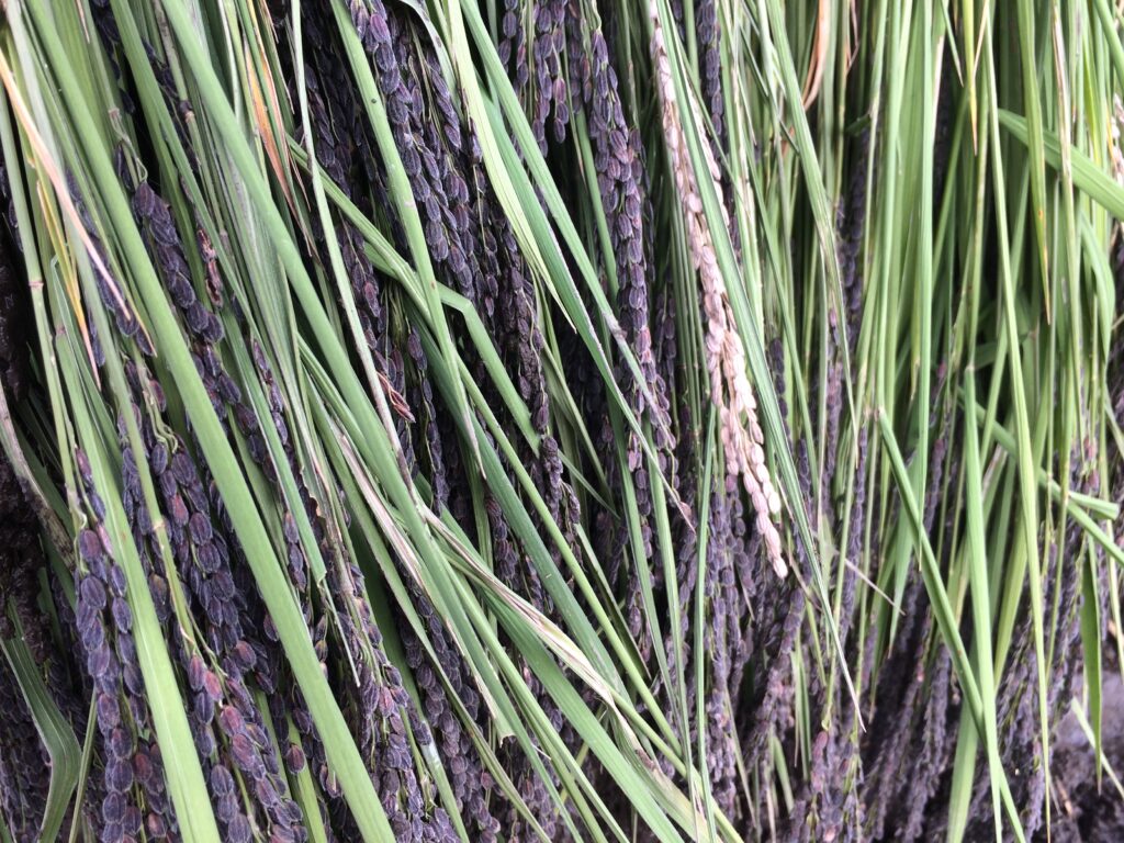 手前の赤米と、奥の黒米、