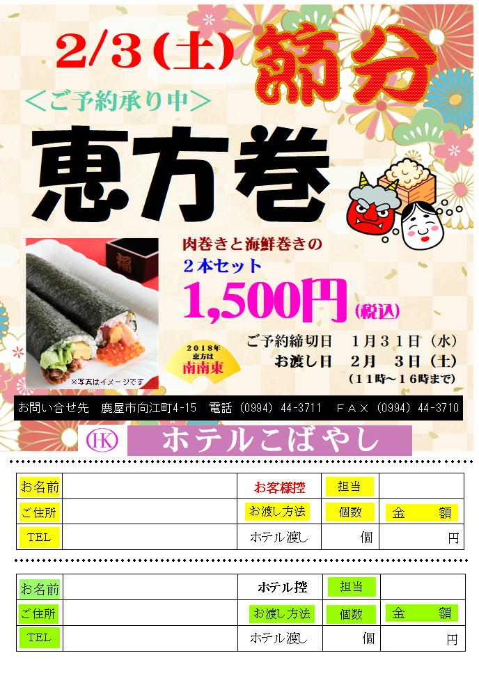 【ホテルこばやし】フロント女子と恵方巻女子会♡