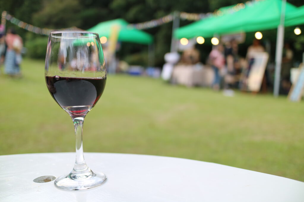 ワイングラスで乾杯、