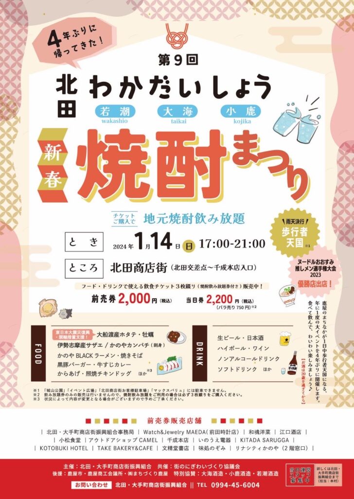 “北田わかだいしょう新春焼酎まつり”が開催されます。